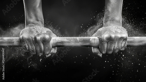 Grit and Determination: A pair of powerful hands, dusted with chalk, grip a heavy barbell, conveying strength, resilience, and the relentless pursuit of physical excellence.