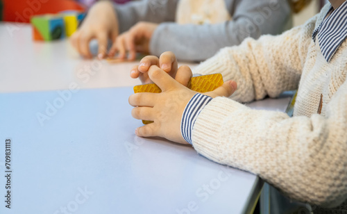Group of Children Sitting at Table for Creative Activity and Learning