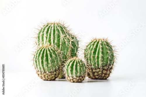 Group of Green Cacti on White Background