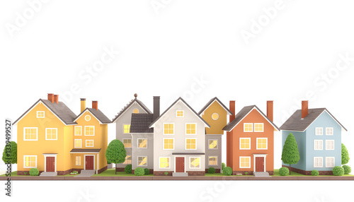 Group of houses illustration - 3d render , with white tonespng