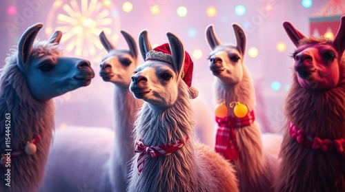 Group of Llama Alpaca wishing happy holiday