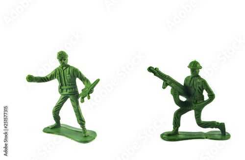 Group of Miniature hold gun toy soldier isolated on white background