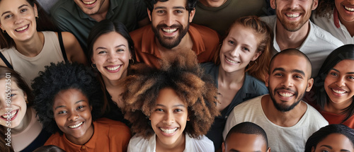 group of multiethnic people smiling in a top view