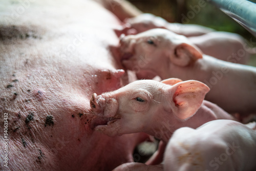 Group of newborn piglet in pig farm