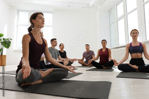 activity, adult, asana, background, balance, body, calm, caucasian, concentration, energy, exercise, female, figure, fitness, flexible, group, gym, harmony, healthy, hobby, indoor, lesson, lifestyle, lotus, male, man, many, mat, meditation, man, mind, people, pose, position, practice, practicing, relaxation, slim, sport, activewear, strength, training, well-being, wellness, woman, woman, yoga, young