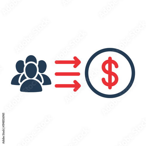 Group of people symbol connected by arrows to a large dollar icon emphasizing financial growth and business success
