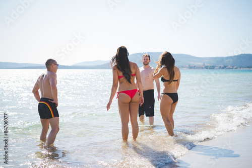 group of young multiethnic friends beach summer