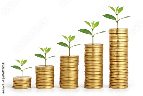 money, coin, gold, plant, growth, investment, finance, business, stack, isolated, white, background, economy, wealth, germ bud, success, financial, increase, savings, coin, currency, bank, cash, banking, concept, gold, graph, chart, pile, column, market