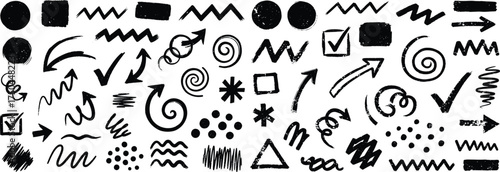 Grungy and Distressed Hand Drawn Arrows, Checkmarks and Shapes for Expressive Design Projects