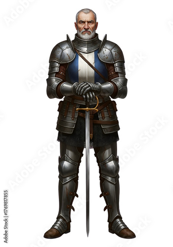 rpg, fantasy, guard, captain, soldier, leader, armoring, steel, sword, commander, mediaeval, vivid colors, knight, sentinel
