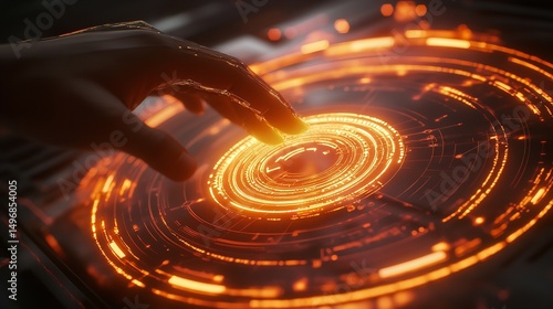 Guiding touch initiating a future tech interface glowing with power and innovation on a sleek dark surface