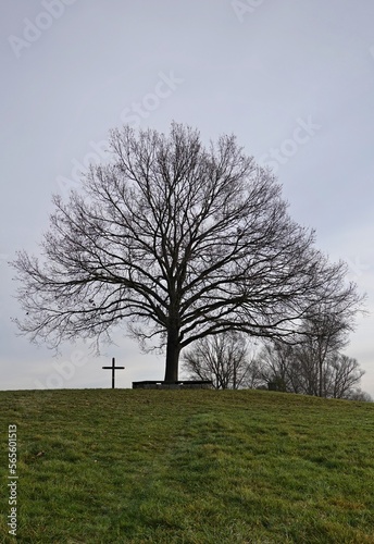 cross, winter, religion, tree, nature, countryside, park