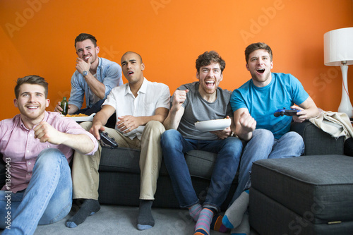 playing, computer, technology, living room, indoor, friends, friendship, fun, winner, loser, happiness, leisure, electrical, wireless technology, success, connection, casual clothes, controller, sitting, smiling, dark hair, game console, entertainment, toothy smile, avocation, man, male, hobby, joystick, facial expression, adult, snack, food, beer, bigger