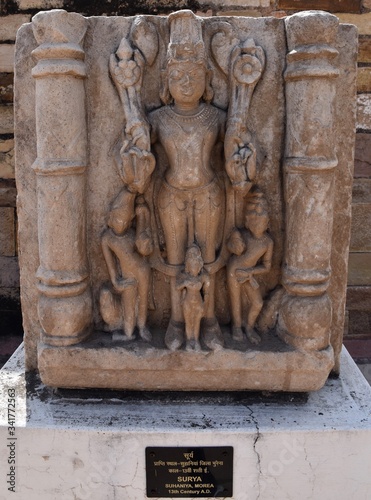 Gwalior, Madhya Pradesh/India - March 15, 2020 : Sculpture of Surya built in 13th Century A.D.