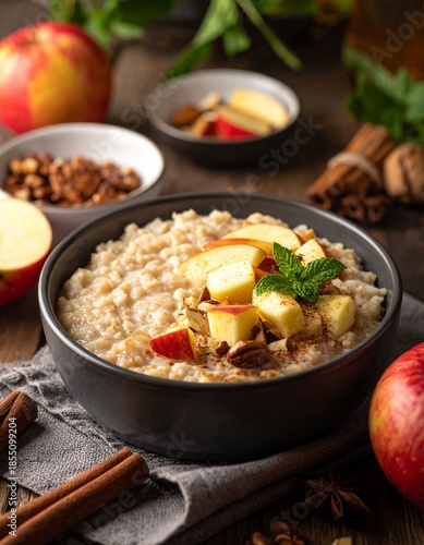 porridge, breakfast, healthy, warm, oatmeal, apple, cinnamon, nut, fitness, food, energy, vegetarian, tasty, organic, balanced, lifestyle, dish, winter, pleasant, natural, health food, vigorous, modern, protein, slight, sweet, wellness, kitchen, brunch, bright, snack
