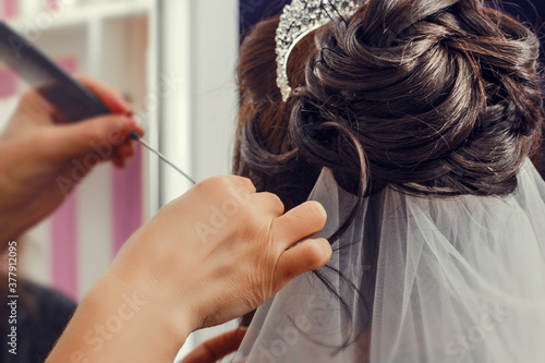 coiffure, wedding, coiffure, hair, hairdresser, master, veil, making, curling, iron, curl, rear, view, stylish, make-up, process, artist, applying, constructed, up, bride, model, salon, portrait, young, beautiful, woman, woman, face, hairdresser, professional, beauty, working, service, cosmetic, fashion, lady, girl, care