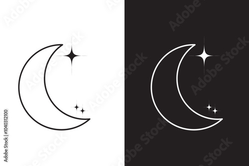 Half moon outline and filled vector icon sign symbol isolated logo twinkle star
