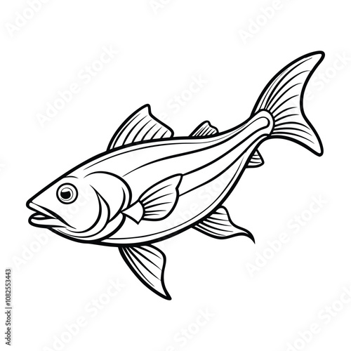 halibut fish design, labeled line art vector silhouette illustration.