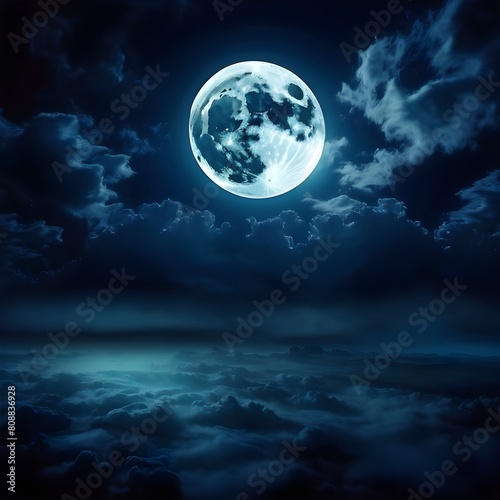halloween background concept, backgrounds night sky with full moon and clouds.