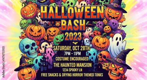 Halloween Bash 2023 Spooky Party Invitation.