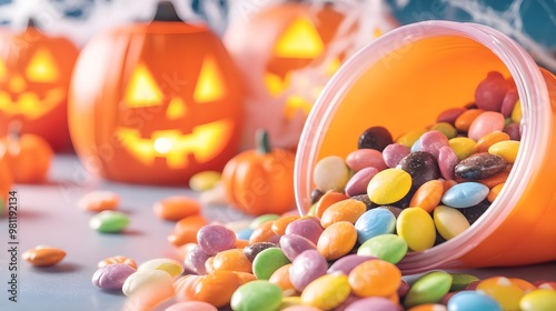 Halloween Candy Spill with Jack-O-Lantern Background