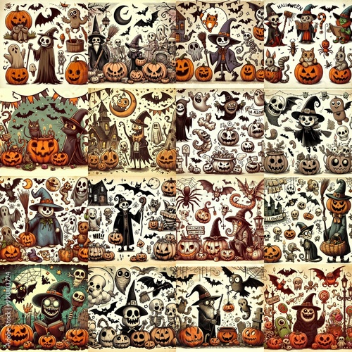 art, generative, generated, illustration, ai, draw, cartoon, fantasy, drawing, magic, sorcerer, poster, flat, boo, halloween, holiday, horror, scarey, skittish, october, party, night, design, autumn, background, happy, celebration, pumpkin, funny, character, creepy, set, cute, evil, monster, graphic, ghost, bat, trick