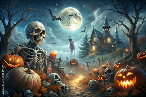 halloween, illustration, pumpkin, house, horror, moon, background, tree, night, october, vector, evil, skittish, grave, cartoon, gravestone, dark, autumn, fear, cemetery, scarey, skittish, bat, full, ghost, moonlight, mystery, spider, celebration, concept, holiday, trick or treat, devil, fog, haunted, jack, nightmare, creepy, gothic, hill, scene, tomb, art, backlit, castle