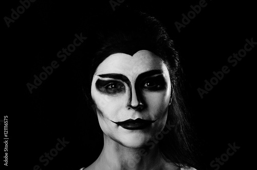 Halloween face-art girl with yellow eyes