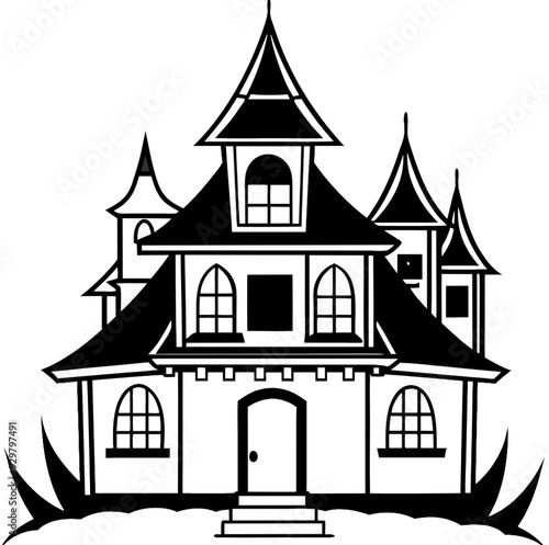house, castle, building, illustration, vector, halloween, cartoon, night, town, architecture, home, city, old, silhouette, moon, village, sky, tree, art, tower, mediaeval, fantasy, design, roof