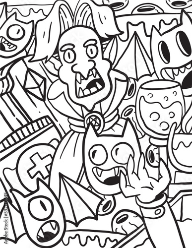 Halloween Monster Doodle coloring page