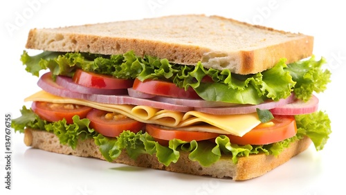 sandwich, bread, food, tomatoes, lettuce, ham, cheese, snack, isolated, lunch, healthy, meal, white, breakfast, salad, toast, fresh, meat, vegetable, bacon, green, turkey, closeup, chicken, baguette