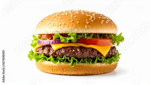 hamburger, burger, food, cheese, beef, cheeseburger, bread, sandwich, bun, meat, isolated, fast, lettuce, tomatoes, white, meal, lunch, fat, sesame, onion, snack, fast food, unhealthy, dinner, tasty