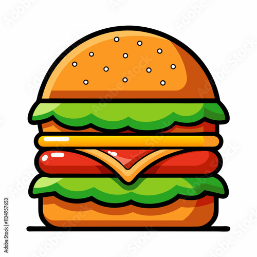 hamburger, burger, food, sandwich, bun, cheeseburger, cheese, beef, bread, meat, lettuce, fast, tomatoes, meal, vector, illustration, salad, isolated, snack, lunch, sesame, fast food, white, fat, big