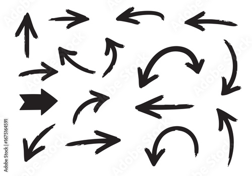 Hand Drawn Arrows Vector Set Directional Elements Black Brush Strokes on White Background Graphic Design and UI UX Icons