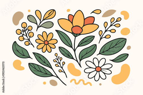 fresh, set, element, botanical, floral, shape, leaf, collection, foliage, template, spring, pastel, variety, vignetting, orange, natural, outline, flower, background, earthy, vector, modern, delicate, illustration, line, bloom, nature, abstract, elegant, creative, summer, wavy, decorative, plant, berry, organic, texture, graphic, light, happy, doodle, diverse, beige, drawn, green, art, yellow