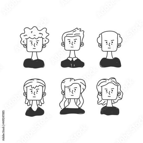 face, illustration, cute, portrait, boy, icon, joy, cheerful, head, man, fun, happiness, young, woman, male, hair, drawing, cartoon, character, avatar, design, vector, isolated, set, human, people, print, art, signs, symbol, hand-drawn, person, profile