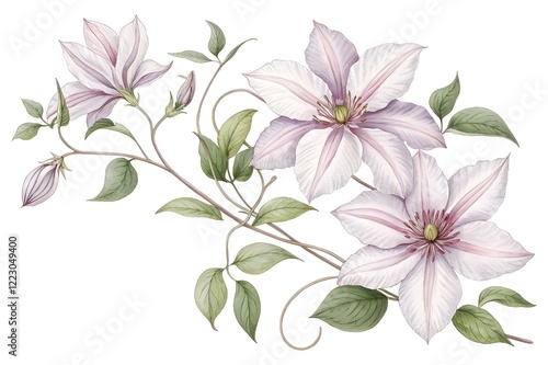 Hand drawn clematis floral illustration