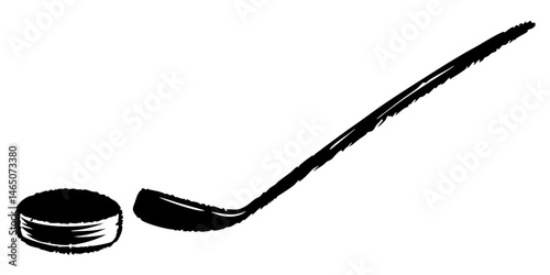 Hand Drawn Hockey Stick and Puck Illustration