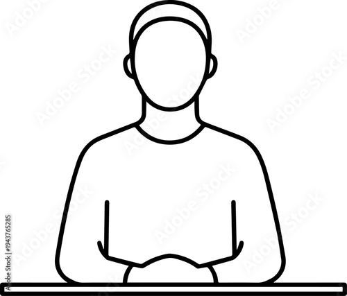 Hand Drawn Man Sitting at Desk Black and White Avatar Illustration in Minimal Line Art Style Design