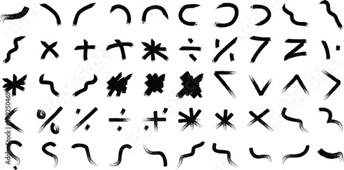 Hand Drawn Organic Shapes Dry Brush Stroke Black Set 50