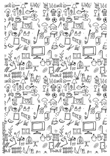 Hand drawn seamless pattern of tools sign and symbol doodles