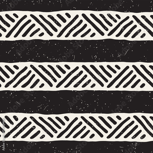 Hand drawn style ethnic seamless pattern. Abstract geometric tiling background in black and white.