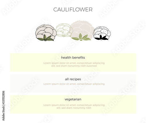 Hand drawn vector cauliflower. A template with vegetables. Healthy nutrition, vegetarians, vegans.
