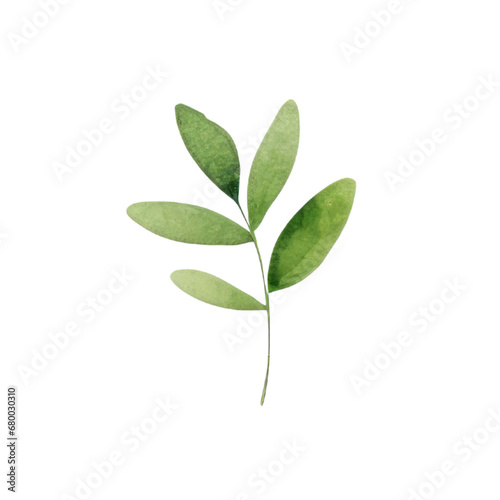 Hand drawn watercolor leaf tropical herb illustration for wedding invitation card, frame and wreath greenery branch transparent background PNG 300DPI