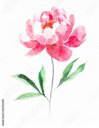 hand, drawn, watercolor, isolated, on, white, background, flower, flower, pink, peony