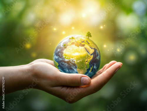 earth, hand, glowing, sustainability, tree, nature, environment, green, eco, planet, energy, light, growth, forest, zero, carbon, impact, climate, renewable, conservation, future, hope, ecosystem, clean, power, organic, fresh, peaceful, harmony, balance, care, protect, responsibility, awareness, ecology, landscape, atmospheric, save, reusing, bio, natural, globe, purity, hand, emission, healing, flora, fauna