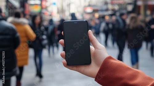 hand, holding, smartphone, blurred, background, urban, city, technology, communication, lifestyle, people, street, display, screen, empty, device, modern, gesture, interaction, user, electronic, sharpened, view, day, fashion, warmth, colours, casual attire, personal