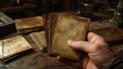 card, tarot, fortune, hand, old, antique, vintage, mystical, magic, occult, esoteric, mysterious, prediction, future, destiny, fate, prophecy, divination, spiritual, wisdom, cognition, power, energy, mystery, secret, ancient, history, legend, mythology, folklore, superstition, belief, faith, ritual, ceremony, practice, game, design, texture, grunge, brown, gold, wooden, table, surface, closeup, detail, object