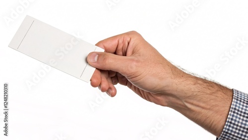 hand, holding, card, blank, empty, paper, invitation, message, note, letter, greeting, business, man, male, arm, sleeve, isolated, white background, studio, photo, stock, closeup, detail, template, copy space, presentation, giving, offering, showing, receiving, accepting, communication, nonverbal, gesture, human, body part, adult, caucasian, business attire, shirt, wrist, advertising, marketing