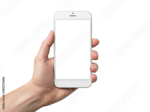 hand, smartphone, phone, holding, blank, screen, white, background, device, support, empty, technology, digital, contraption, mobile, communication, tech, blank screen, white background